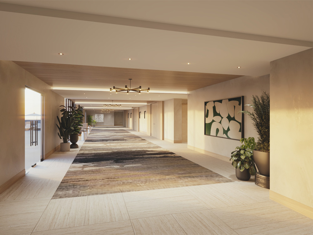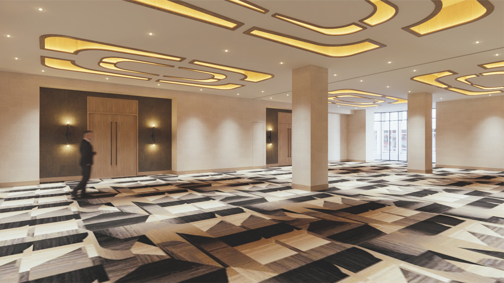 - New carpet, base and decorative lighting, mix of reusing FF&E and new soft goods and art