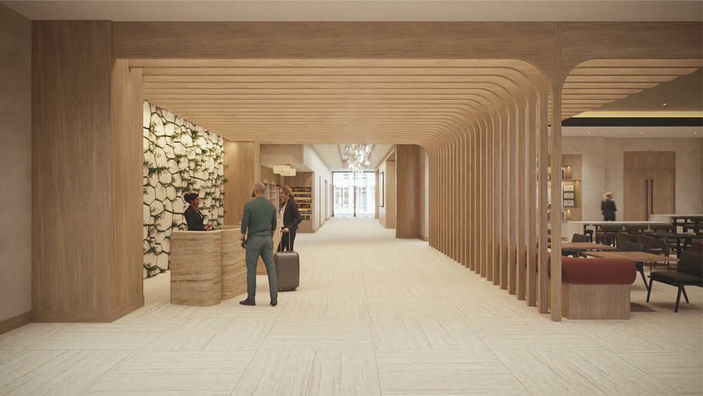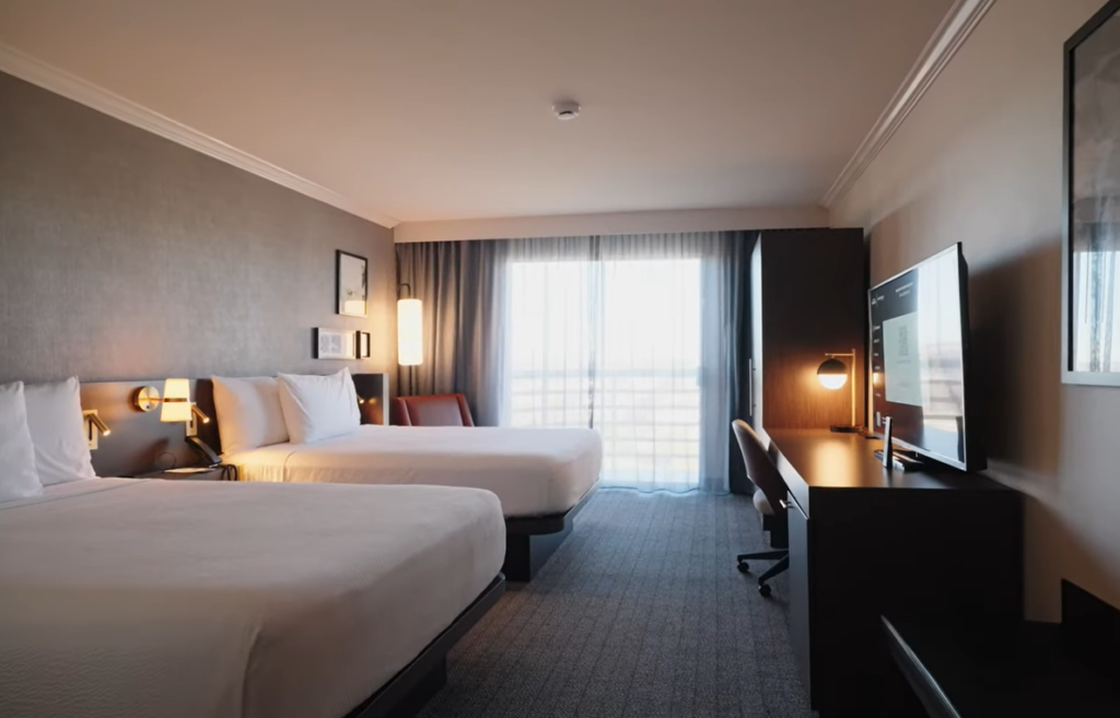As part of a brand conversion from a DoubleTree to a Courtyard Marriott, the property was thoughtfully refreshed to enhance the overall guest experience. Updates included renovated guestrooms and corridors with refreshed finishes, lighting, and flooring, along with HVAC improvements to support comfort and efficiency. Public spaces were reimagined with a redesigned lobby, bar, and market concept, while meeting and ballroom spaces were upgraded with cohesive interior improvements. Additional enhancements included a new fitness center, refreshed pool deck finishes, and exterior updates that completed the transformation.